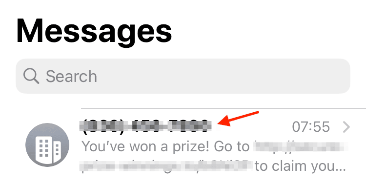 First, open the Messages app and find a recent spam text message.
