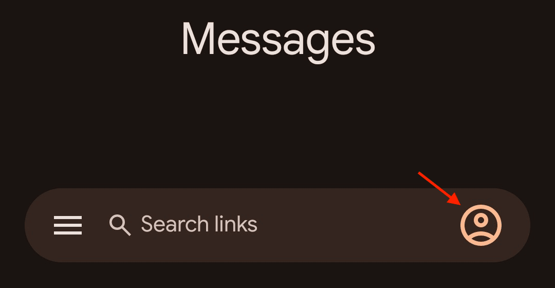 First, open the Messages app, and click on the Account icon on the right-hand side of the search bar.
