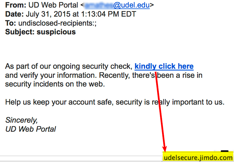 - Does the sender’s email address and “from” name match? (You can hover over or click on their name to reveal their email address.)