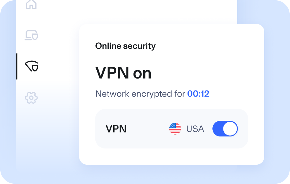 Whether you're getting some work done at the airport or browsing from your hotel room, Aura's VPN protects your online activities with military-grade encryption, shielding your identity and info from hackers and cybercriminals.