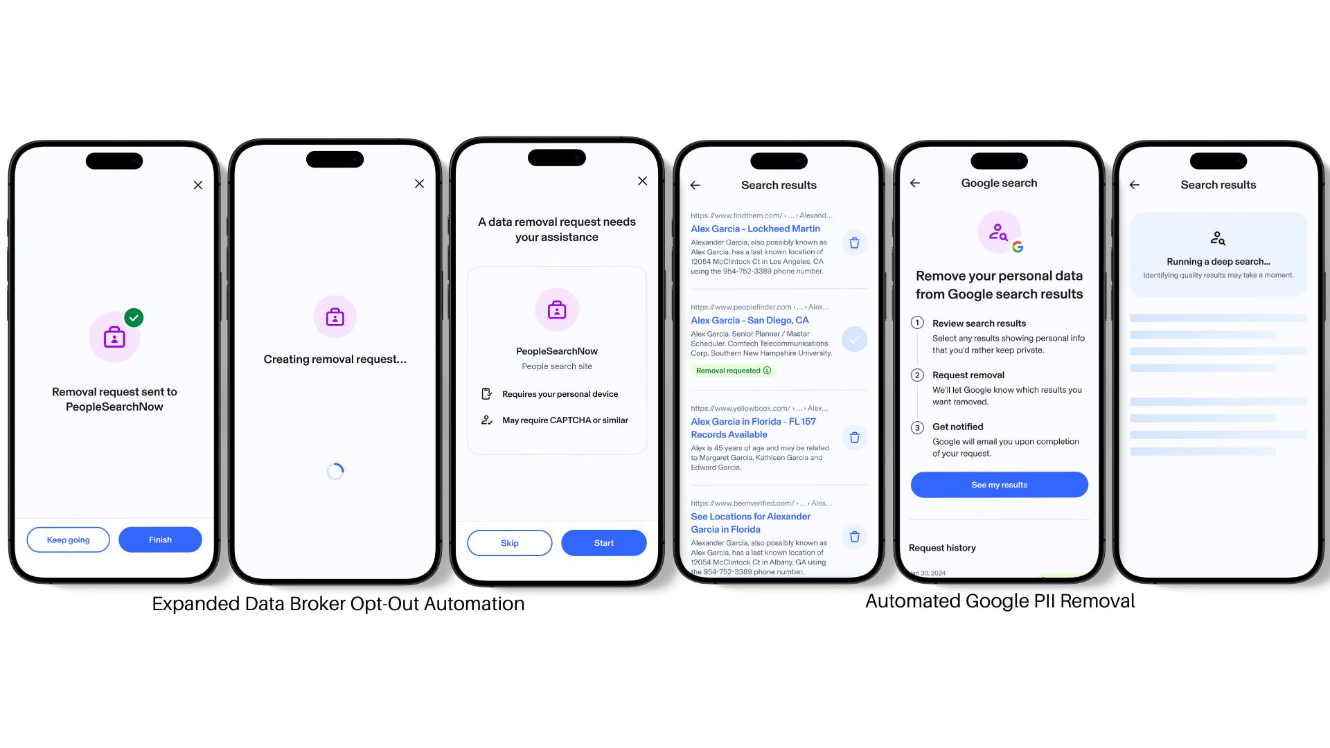 - Automated Google PII Removal – Aura now helps customers request the removal of personal information, such as home addresses and phone numbers, from Google search results. Customers can choose which links to remove and which to keep.